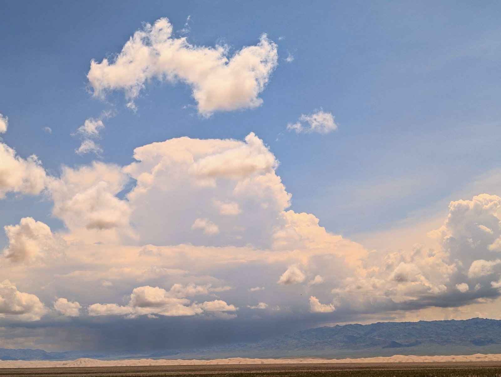 The Khongoryn Els dunes are one of the largest in Central Asia — 100 kilometers long and up to 300 meters high, bordering an oasis of grass and water that the Mongolians call Duut Mankhan (‘singing sands’) because of the sound the wind makes across the ridgeline. The dunes are visible from 50 kilometers away and grow more impossibly large as you approach.