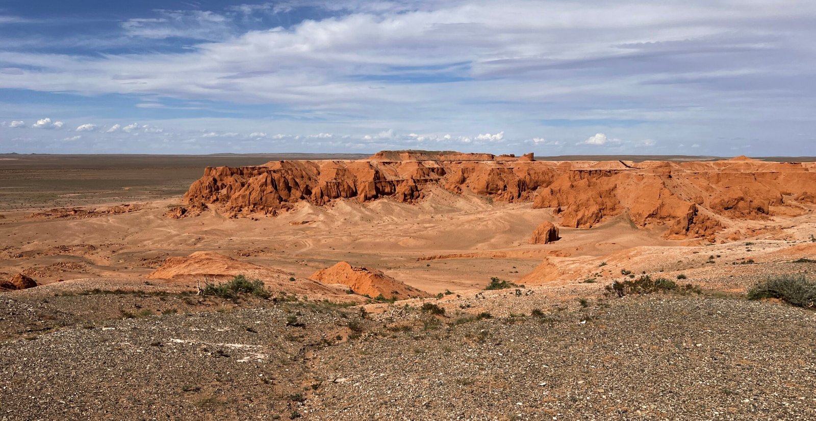 Duration: 2-3 hours walking. The cliffs are most striking in the late afternoon when the sandstone turns deep red. Roy Chapman Andrews discovered the first known dinosaur eggs here in 1922. Your guide explains the geological history and the significance of the site for paleontology.