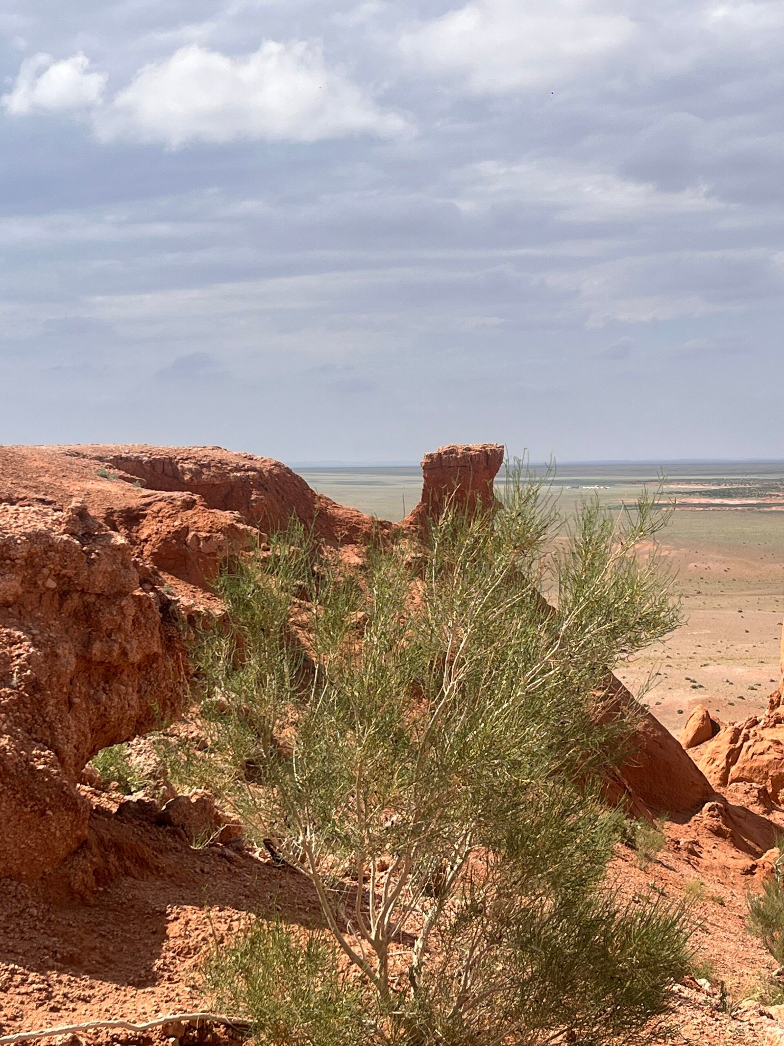 Duration: 4-5 hours (300km south). The landscape transitions from steppe to desert steppe -- saxaul trees, smaller vegetation, and the soil colour shifting from green to orange.