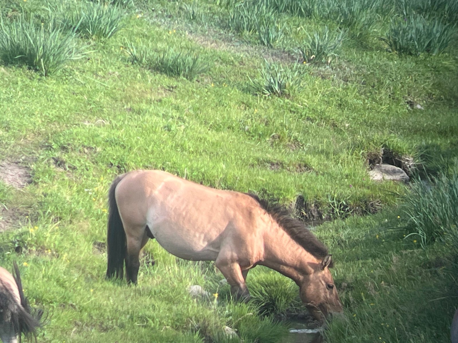 Duration: 2-3 hours. Drive west to Khustai, home of the reintroduced Przewalski's wild horse (Takhi). The horses roam the hills in family herds -- your guide knows the grazing areas and tracks them from the park observation points.